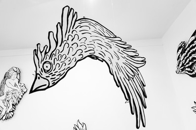 « C'est l'idée d'un arrêt sur image qui m'intéresse, comme si nous étions témoins d'une scène muette mais dynamique et que nous appuyions sur le bouton de la télécommande VHS pour figer cet instant précis. Je voulais mettre l'accent sur le mouvement, la panique, l'affolement. Après l'installation, je réalise qu'il y persiste tout de même une sensation très douce. C'est comme si la fin du monde pouvait avoir plusieurs textures. »
